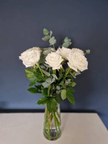 Cette brassée de roses blanches est disponible en différents formats, 9, 15 ou 25 roses pour vos petites ou grandes occasions.