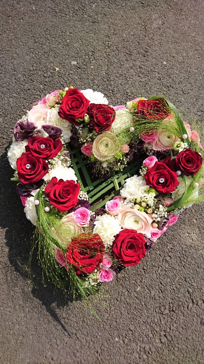 Le cœur évidé "Précieux souvenir" témoigne d'un bel hommage par sa jolie forme & ses couleurs blanches, roses & rouges.